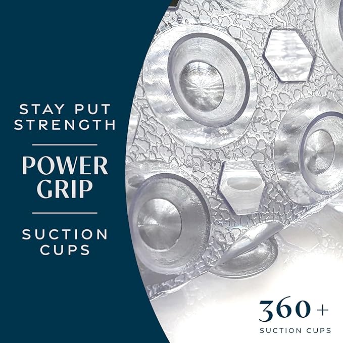 - Industry-Leading Grip: Our mat is equipped with 365 large, pliable power grip suction cups that are almost 30% larger and over 25% stronger than competing brands, ensuring a secure hold on smooth, non-textured surfaces for maximum slip resistance.