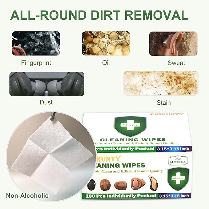 - 【Compatible】- Phirunty Hearing Aid Audio Cleaning Wipes are specially developed for hearing aid precision equipment and are suitable for all hearing aid types and hearing amplifier of Oticon, Widex, Phonak, Starkey, Resound, Unitron, Signia, Rexton,Philips and other brands.