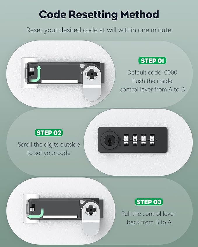 - Locking Methods: Code: turn the knob right first and scramble the digits. Key: scramble the digits first, insert the key and turn it to the far right. (Notice: It must be locked by the key first, otherwise it can be opened even with a wrong code.)