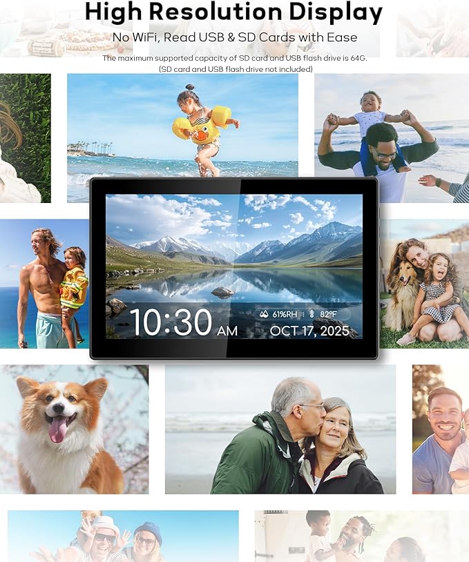 - ๐๐ฎ๐ข๐ฅ๐ญ-๐๐ง ๐๐ข๐ ๐ข๐ญ๐๐ฅ ๐๐ข๐๐ญ๐ฎ๐ซ๐ ๐ ๐ซ๐๐ฆ๐: More than just a clockโinsert a USB flash drive or SD card (๐๐ฝ ๐๐ผ ๐ฒ๐ฐ๐๐, ๐ป๐ผ๐ ๐ถ๐ป๐ฐ๐น๐๐ฑ๐ฒ๐ฑ) to display your favorite photos and relive precious memories on the screen.(SD card and USB type: SD, SDHC, SDXC, USB2.0, support for maximum capacity of 64G)