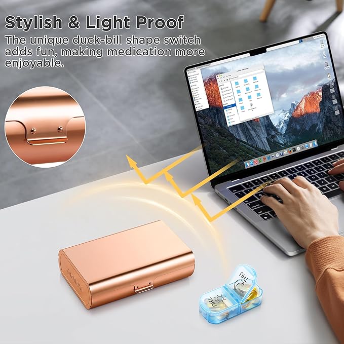 - Professionally Certified Safe Quality: The outer shell of this 7 day pill case is lightweight and crush-resistant, made of ultra-sturdy anodized aluminum. The internal pill container is made of BPA-free, food-grade material. These premium materials ensure a sleek and stylish look and provide ultra-safe use. The solid quality can withstand the test of time and provide you with long-lasting service.