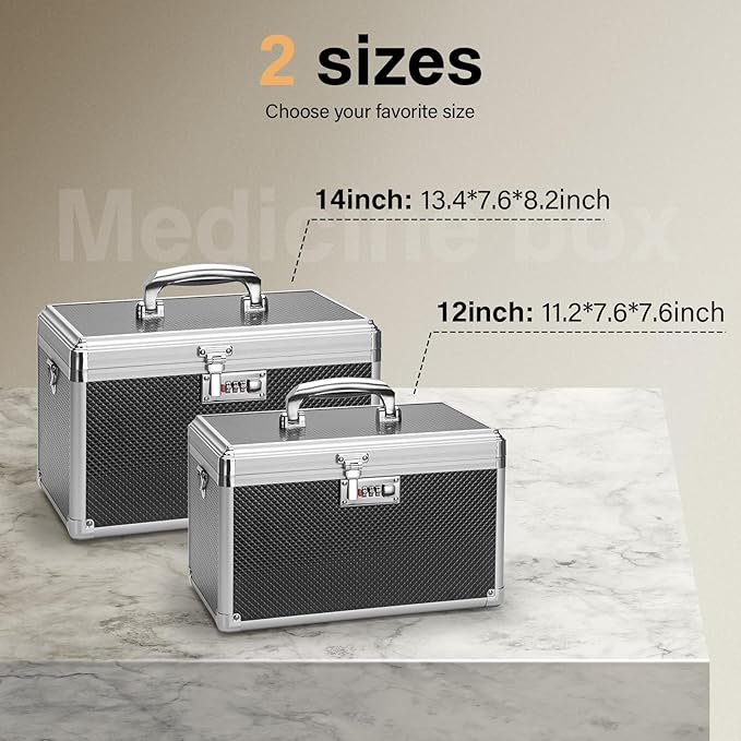 - PERFECT SIZE: Measuring 11.2 x 7.6 x 7.6", Black, unique combination lock + shoulder strap. our locked medicine box can store up to 13-15 pill bottles or any other small first aid