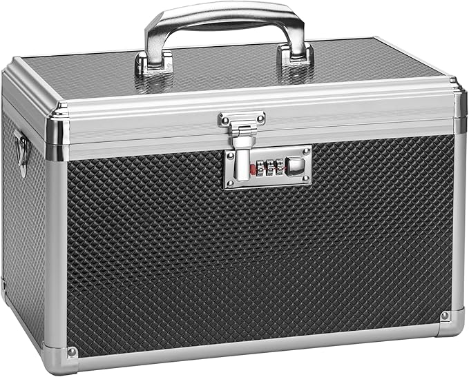 Medicine Lock Box with Combination Lock - 11.2 x 7.6 x 7.6 Inches - First Aid Safe Medication Storage Box, Medications and Personal Items, Safe Boxes for Home and Outdoor - Black
