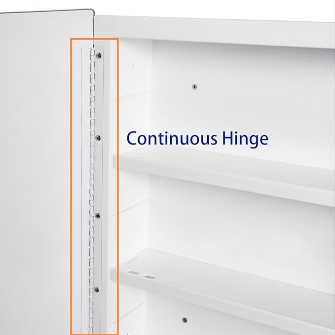 - 【Hinge】The bathroom medicine cabinet is with continuous piano hinges, providing strong support for the door panels; and also make it easier to control the angle at which the doors open and close.