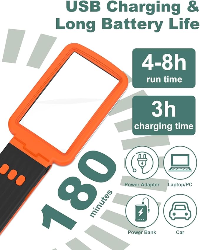 - Rechargeable Convenience: Say goodbye to the hassle of constantly replacing batteries! Our page magnifier features a rechargeable design that allows you to enjoy uninterrupted use without having to replace batteries or connect a power cord frequently.