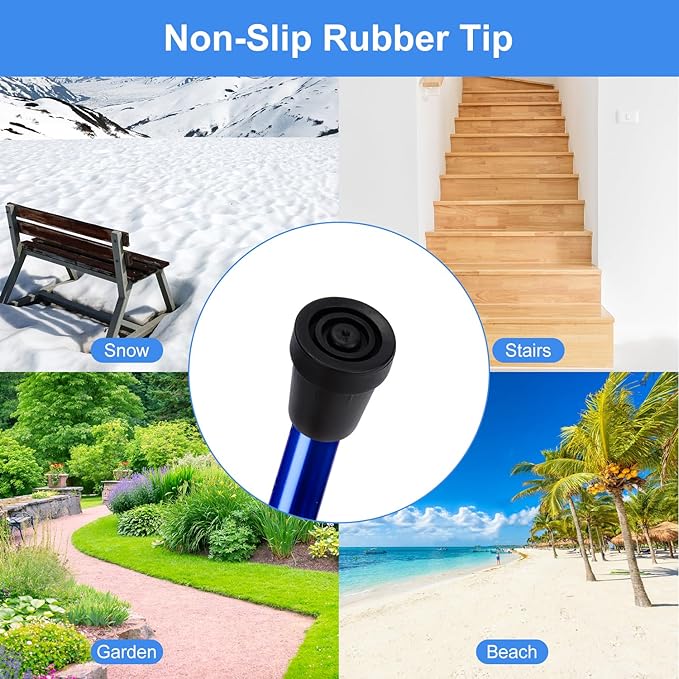 - The tip is made of sturdy TPR anti-slip material, providing great traction and stability; it could be replaced to other types of cane tips to meet various requirements