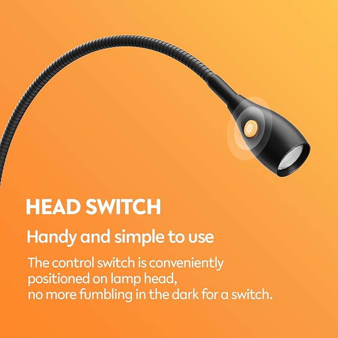 - User-Friendly Switch Design: The LED book lamp is ergonomic, control switch is conveniently situated on light head, easy to feel and simple to operate. No more fumbling in the dark for a switch, standing up or turning around to turn off light