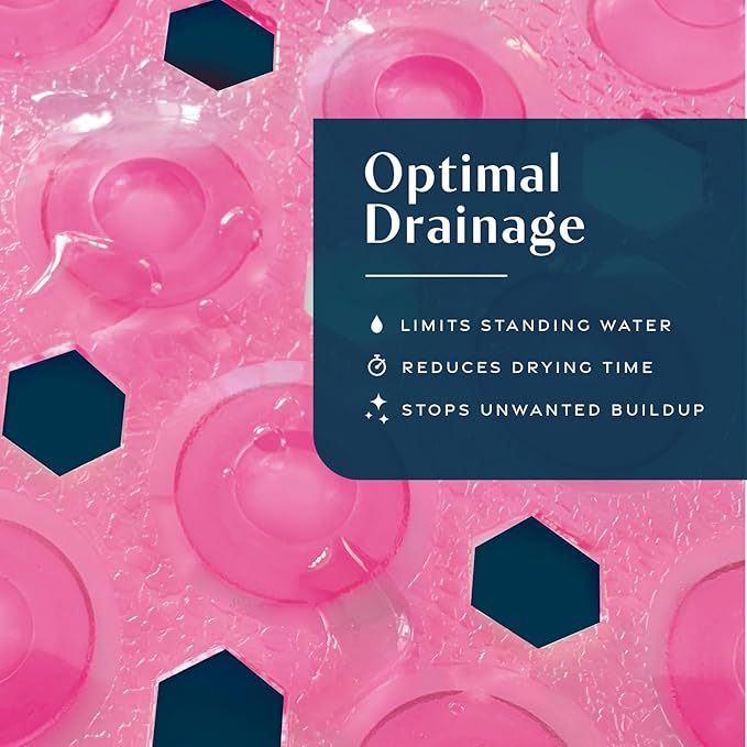 - Superior Drainage: Hundreds of large hexagonal drain holes prevent water from pooling, reducing the risk of standing water and allowing your mat to dry faster between uses and helping prevent buildup.