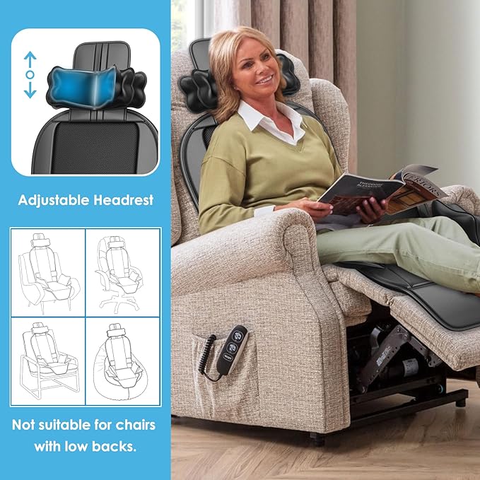 - Multi-Functional Back Massager: This kneading full back massager with heat is equipped with two heatable massage nodes that move up and down on the back, a three-layer support pillow at the headrest, two supports on both sides of the seat cushion and two vibration motors in the seat cushion to meet your diverse massage needs