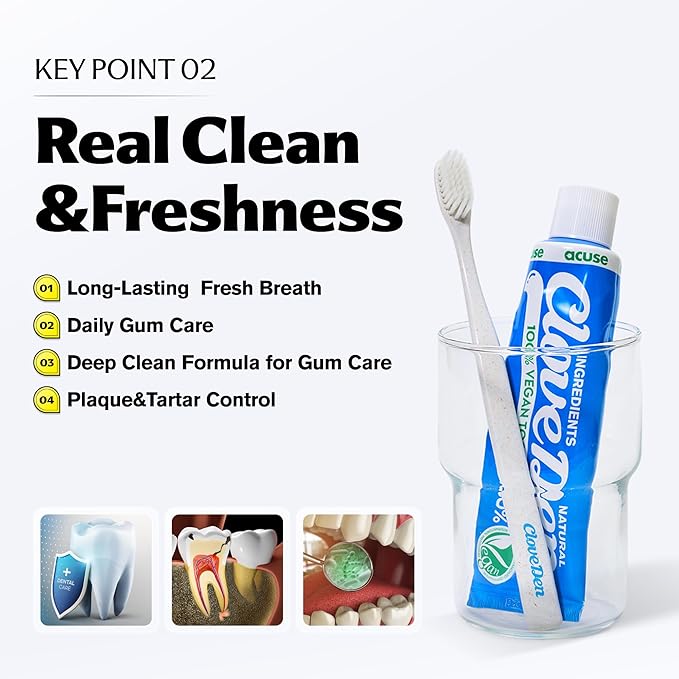 - Clean & Vegan Formula – Fluoride-free, SLS-free, and plant-based ingredients provide a smooth, low-irritation brushing experience.