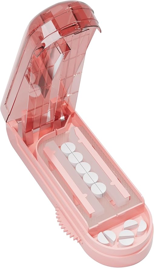 Pill Cutter Splitter for Small and Tiny Pills, Pill Splitter Accurately Cuts Multiple Pills at Once for Large and Small Medicines, Sharp Blade with Safety Guard (Pink)