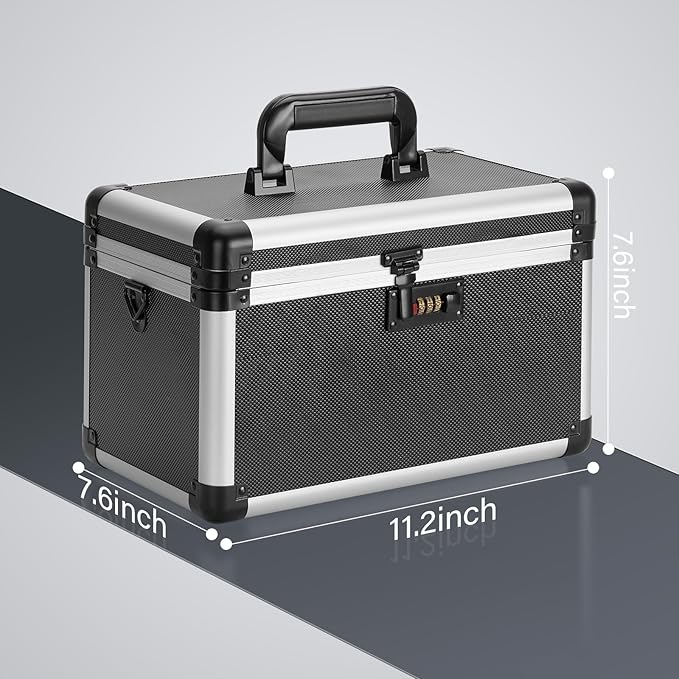 Medicine Lock Box with Combination Lock - 11.2 x 7.6 x 7.6 Inches - First Aid Safe Medication Storage Box, Medications and Personal Items, Safe Boxes for Home and Outdoor - Tactical Black