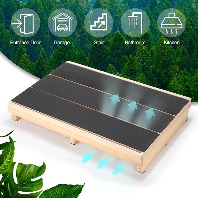 - Proper Size: with measuring 60 x 40 x 9cm/23.62 x 15.75 x 3.54 inches, this wooden platform is large enough to offer sufficient stepping space for users; Despite the size, the stool is easy to move and offers secure leverage