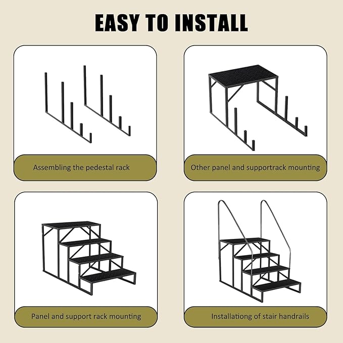 - 【Mobile Home Stairs Wide Use】: Our safety camper steps can be used both indoors and outdoors. Our swimming pool ladder above ground provides extra height for stage, storage room, truck, travel, outside, exercise and therapy. And the portable outdoor stairs can also be used as a decorative shelf, tall bed step, inflatable hot tub accessories, medical step stool with rails in house and RV entry. Wherever requires climbing, mobile home steps is an ideal choice!