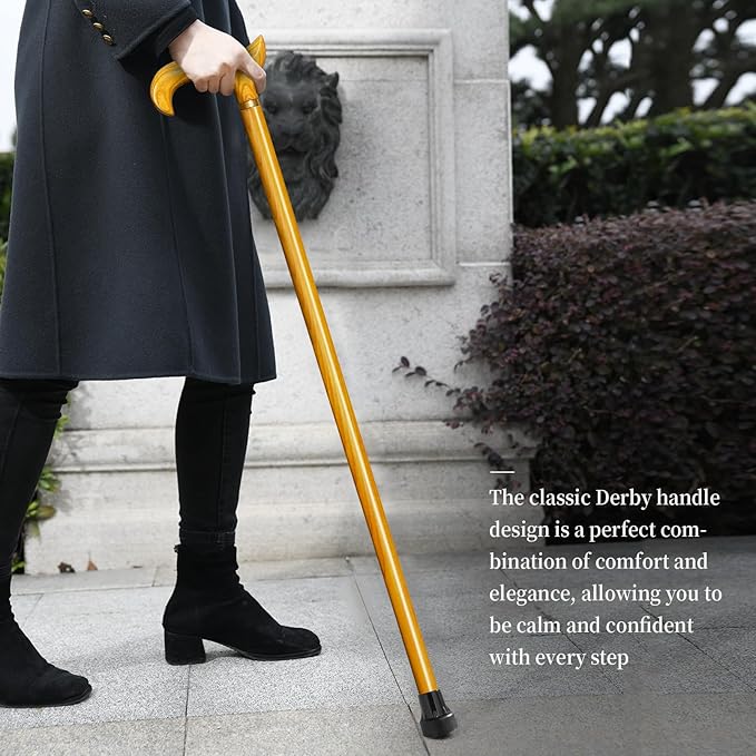 - We use our ingenuity to inherit the craftsmanship and reproduce the classic Derby handle cane. By owning this walking cane, you get more than a wooden walking cane, you also acquire a fashionable piece of art. Of course, this cane is an excellent gift for both parents and friends, We are certain they will love it