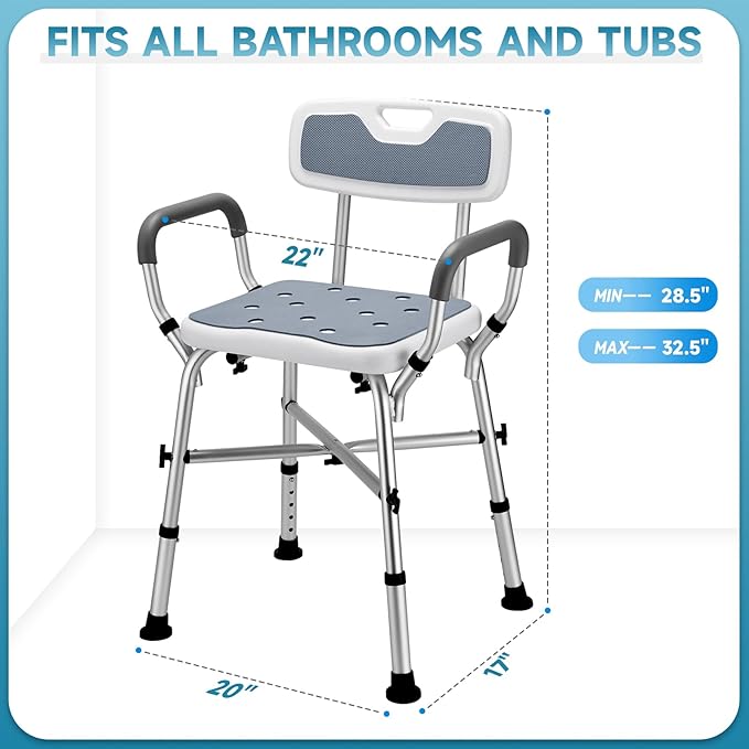Shower Chair for Inside Shower, FSA/HSA Eligible 600 lbs Heavy Duty Shower Chair for Elderly and Disabled, Height Adjustable Shower Chair with Arms and Back, Bath Chairs for Seniors, Adults, Handicap