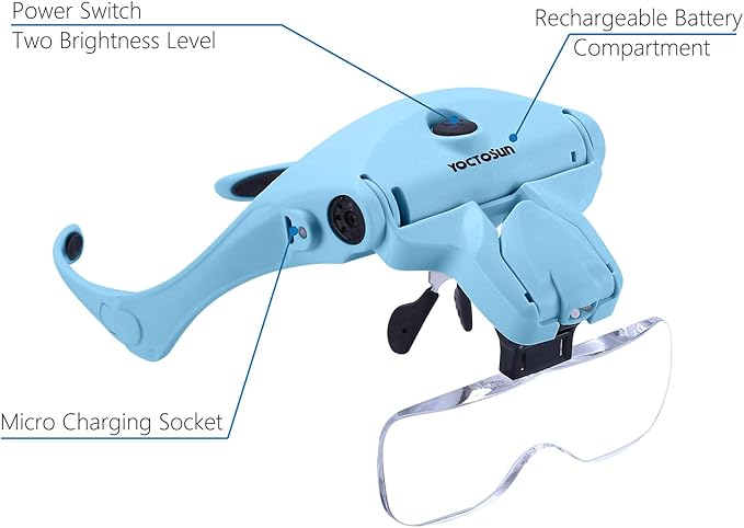 YOCTOSUN Magnifying Glasses with Light for Close Work, Head Magnifier with 5 Interchangeable Lenses and 2 LED Lights, Hands Free Head Mount Magnifying Glass for Crafts, Cross Stitch, Jewelry