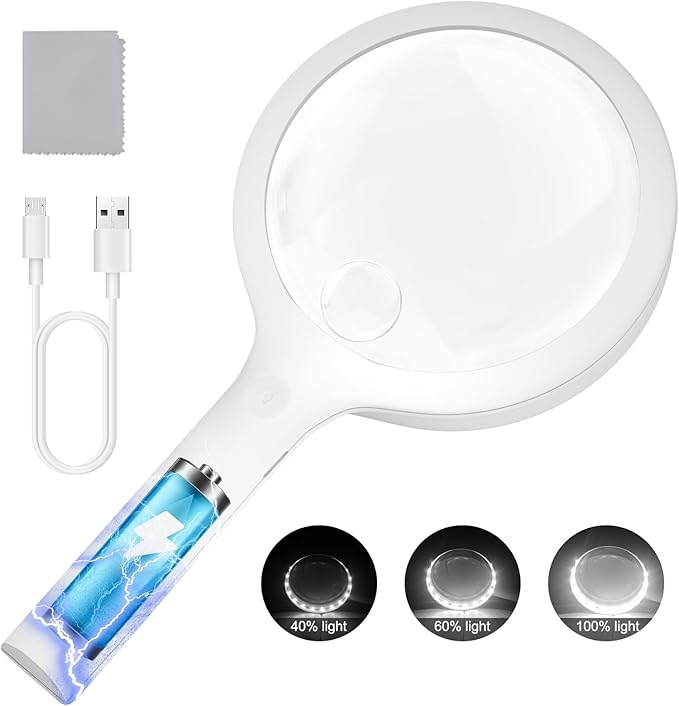 - Super clear vision: Equipped with a smart sensor switch and 20 Daylight LEDs Illuminated our large magnifying glass with light provides ample illumination, allowing you to see even in low-light environments. No more squinting or straining your eyes