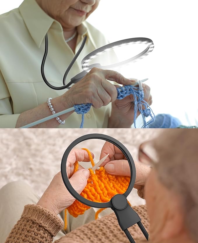- Hands-Free Magnifying Glass with Light: The flexible gooseneck design allows you to keep your hands free. It can be hung around your neck and adjusted to different directions and heights, or placed on a table for convenience. Even with prolonged use, it remains comfortable and prevents fatigue. It's perfect for activities like reading, cross-stitching, repairs, and more.