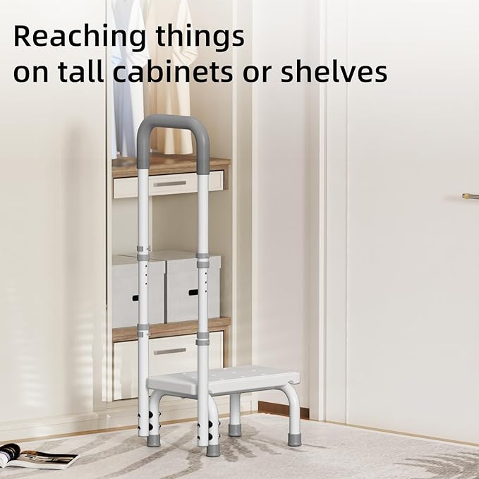 Step Stool with Handle for Ederly and Non-Skid Platform, Height Adjustable Heavy Duty Steps Foot Stool for Adult, Seniors, Foot Stool for Bedside, Kitchen,Bathtub Car,Safely Load 440 lbs. (White)