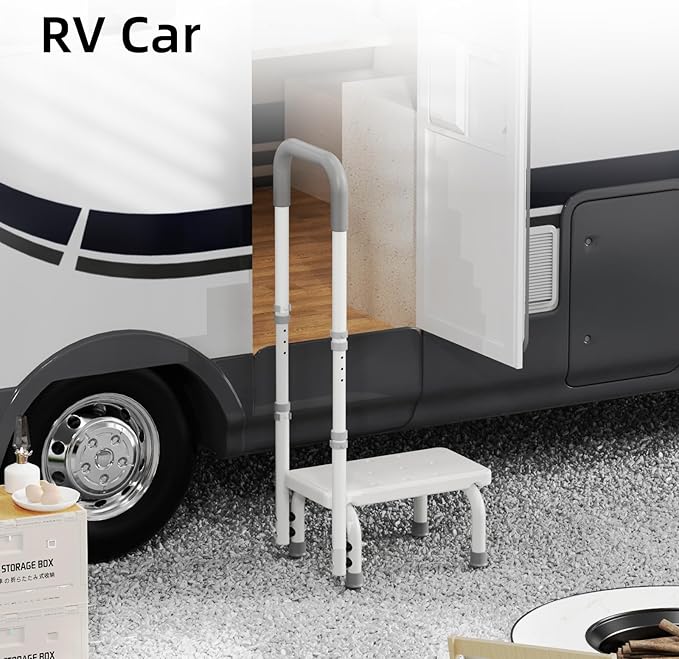 - HEIGHT ADJUSTABLE SOFT ARMREST: CABTE Senior Step Stools with handles are available from 33.7'' to 37.6''. These flexible, customizable features adapt to different user heights, hand sizes, and surroundings to increase user comfort and freedom.