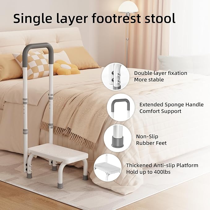 - MULTIFUNCTIONAL AND MULTIPURPOSE: A step stool can be used to access higher beds, vehicles and bathtubs. It can also be used as a footstool for seniors or adults to get in and out of bed.