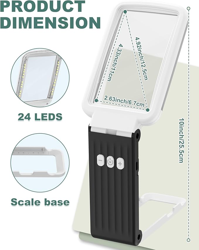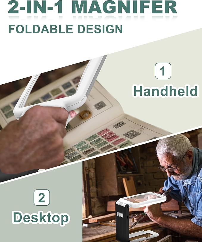 - Versatile Folding Design: Enjoy the flexibility of a handheld or desktop magnifying glass! Our innovative folding design lets you easily switch between using it in hand or setting it up on a table, making it perfect for any task.