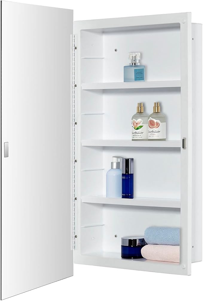 Plastic Medicine Mirror Cabinet for Bathroom 16 x 28 inch, Recessed and Surface Mount