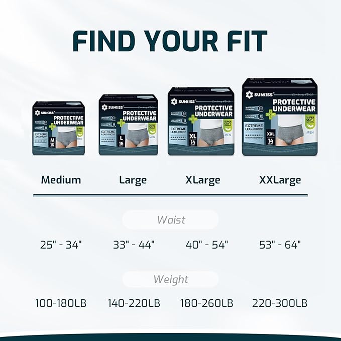 - All-Around Leak Protection: Featuring reinforced leak guards and a 360-degree elastic design, these incontinence underwear fit snugly to the body, preventing side and back leaks.