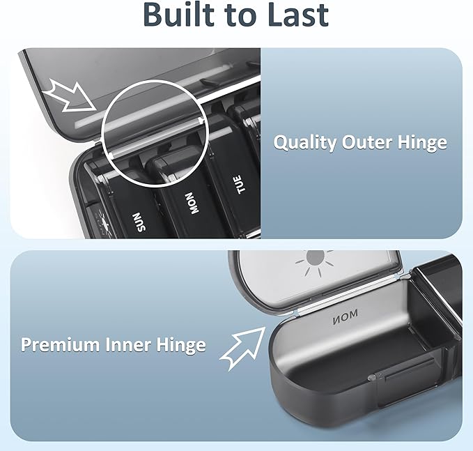 - 【Built to Last】With strong hinges, the travel container provides you with a reliable and long-lasting solution for medication management