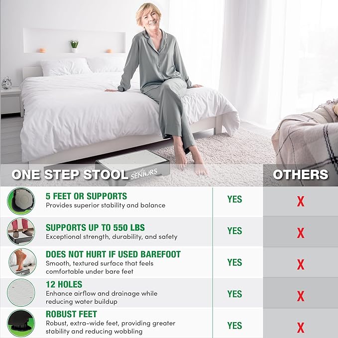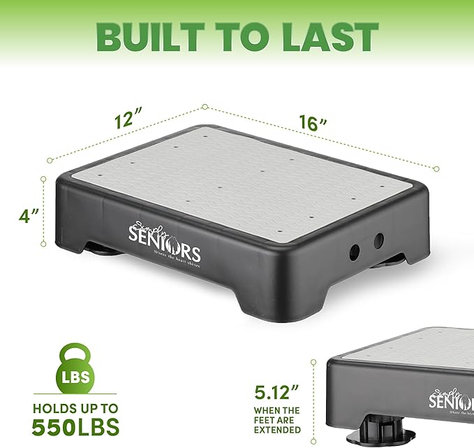 - 📏 ADJUSTABLE HEIGHT FOR VERSATILITY: Gain an additional 1.12 inches with its adjustable height feature, making it perfect for stepping into vehicles, reaching high shelves, accessing the toilet, exercise routines, and especially as reliable bed steps for high beds for adults.
