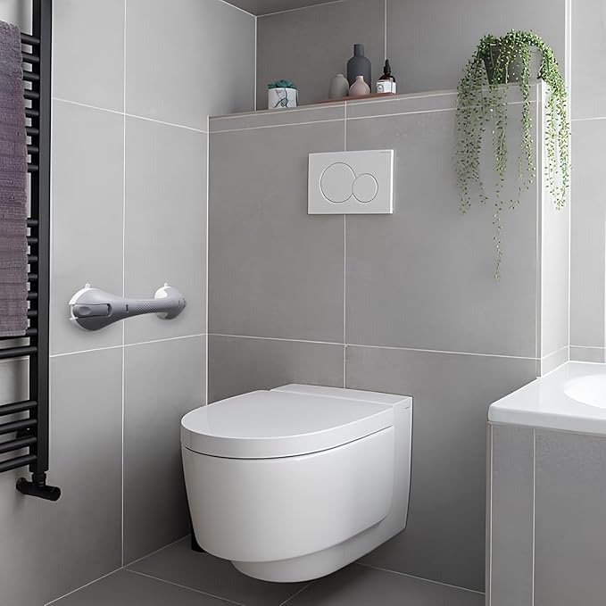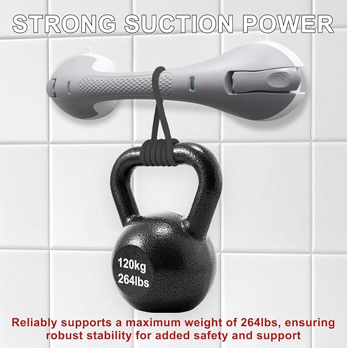 - Upgraded Sturdy & Secure Support - Our grab bar is constructed from reinforced nylon, featuring thickened and enlarged TPE strong suction cups, providing enhanced stability and reliability for your safety in the shower while supporting a maximum weight capacity of 270lbs.