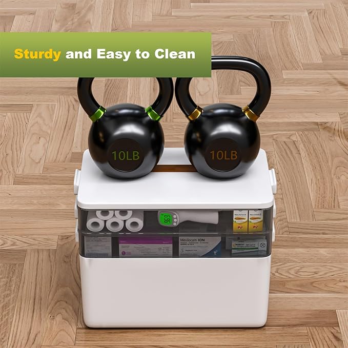 - [Large Capacity]: It completely changes the way you store your medications. emergency medication, and other medical supplies. Compact sizes allow the medicine vitamin storage organizer to fit well in cars, trunks, cabinet Size:13.38*8.67*10inch.