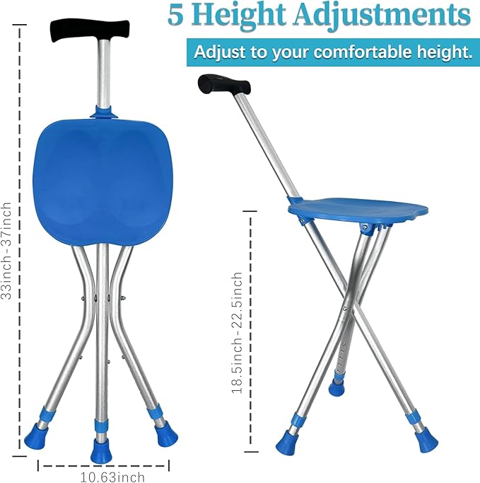 - Comfortable seat and sturdy support: Provides a comfortable seat to rest on when open, and a sturdy support cane when closed.