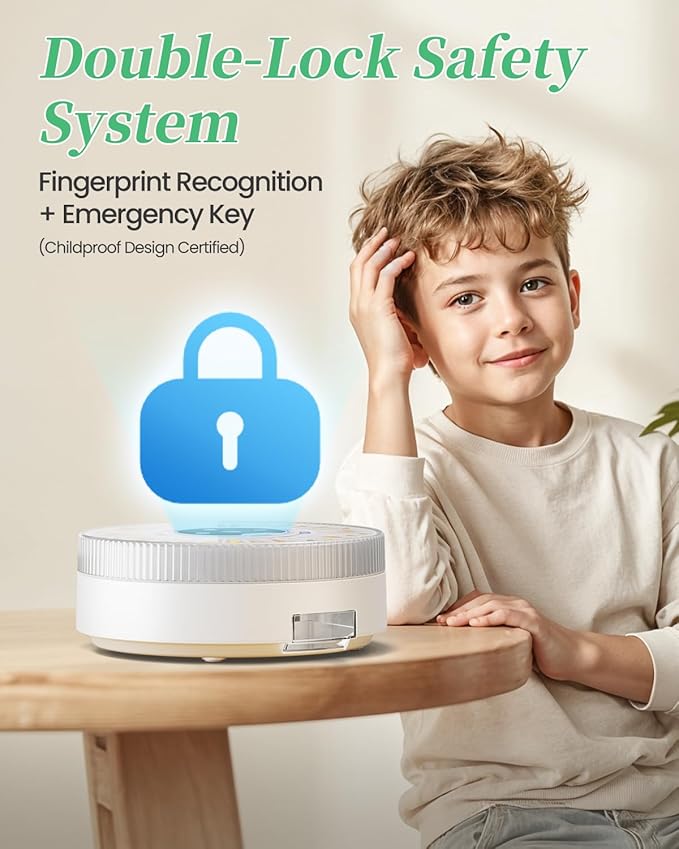 - 【Smart Dual-Lock Protection】: Combines fingerprint scanning (blocks impulsive access) with a physical backup key (prevents forgotten schedules). This system stops accidental overdoses by dementia patients and helps manage medication for recovery needs, releasing pills only at preset times with controlled amounts.
