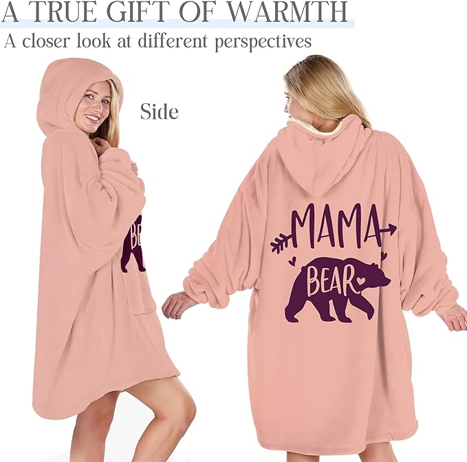 - 🐻 Cute Mama Bear Design Moms Adore: Featuring a charming mama bear, momma bear, and mama bear hoodie style, this cozy mama bear wearable blanket is perfect for best gifts for toddler moms, new moms, and proud bear mamas everywhere.