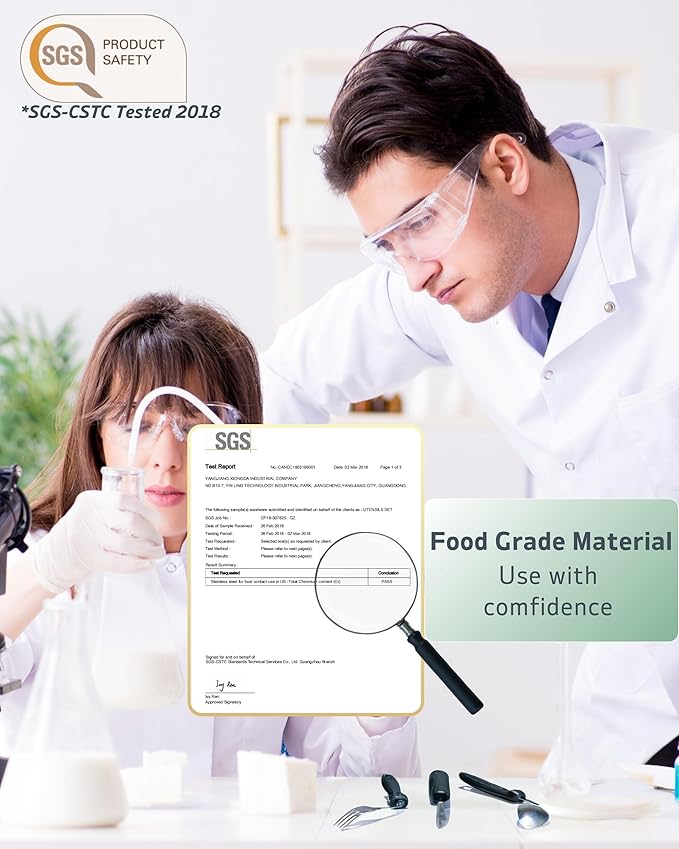 - DURABLE STAINLESS STEEL CONSTRUCTION: High-quality, dishwasher-safe stainless steel eating surfaces with food-grade silicone handles. Long-lasting adaptive silverware set for daily use.