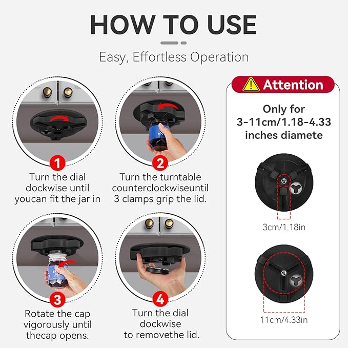 - Ideal for Seniors: This easy-to-use jar opener is specially designed for those with limited hand strength or arthritis. a practical and thoughtful gift that brings real relief