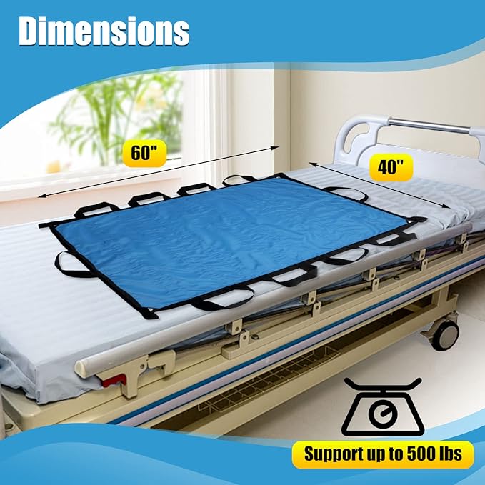 - Big Size: 40 x60 inch, large enough to facilitate patient or elderly transfers. 4 corner grab straps and 6 reinforced side handles, ensuring safe and effortless repositioning.