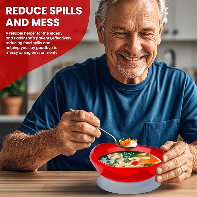 2Pack Spill Proof Scoop Bowl with Non-Skid Suction Base, Adaptive Self-Feeding Dinnerware for Elderly and Disabled(Red)