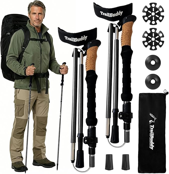 TrailBuddy Trekking Poles – Lightweight 7075 Aluminum Hiking Poles for Women, Men & Seniors – Collapsible or Foldable Walking Sticks for Travel, Trails & Balance