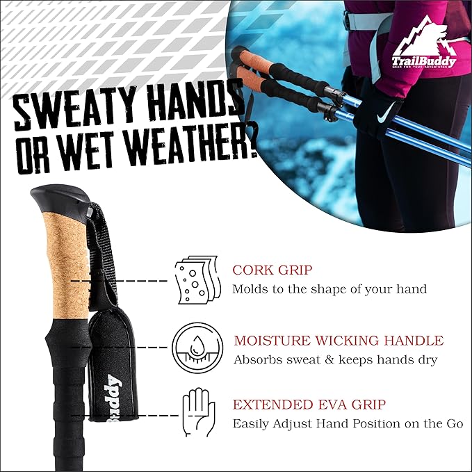 TrailBuddy Trekking Poles – Lightweight 7075 Aluminum Hiking Poles for Women, Men & Seniors – Collapsible or Foldable Walking Sticks for Travel, Trails & Balance