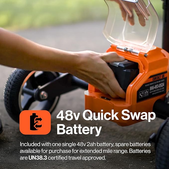 - Comprehensive Package: The Passport comes complete with two batteries and a charger, ensuring you have everything you need to get started right out of the box. Solid 6.75” tires provide a stable and smooth ride, and a front-hanging basket offers convenient storage.