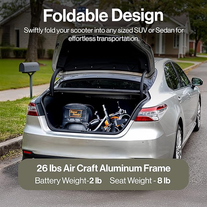 SuperHandy Passport Mobility Scooter for Adults - Foldable, 3 Wheel, Airline Travel Friendly - 6.5 Mile Range, 48V 2Ah Li-Ion Swappable Battery System (1 Li-Ion Battery)