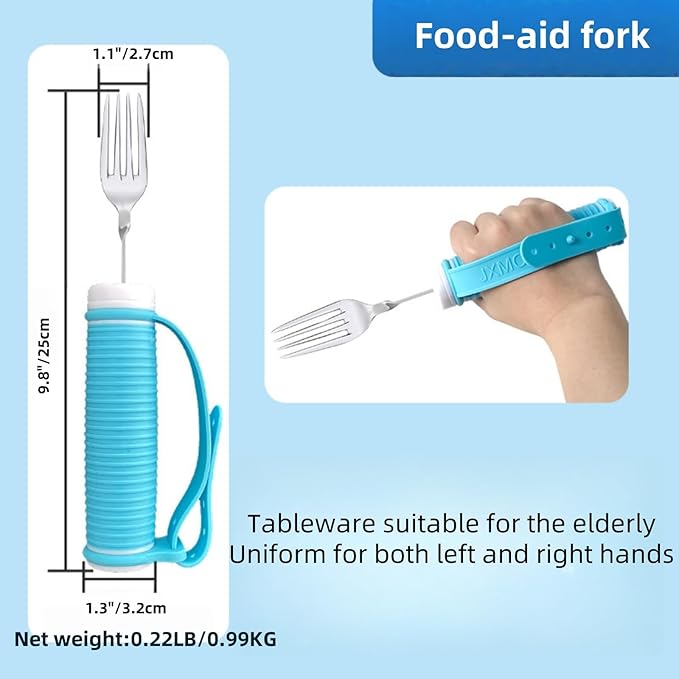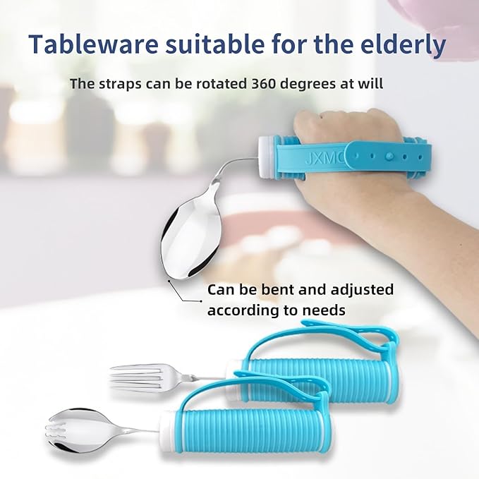 Tremors Elderly Assistance Products,Spoon and Fork Three Piece Set,Handicap Accessories for Daily Living,Adaptive Equipment with Blue Handle Belt,Aids for Living,Eating Utensils Sets.