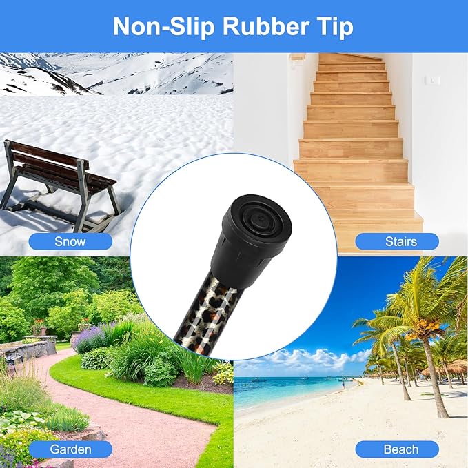 - The tip is made of sturdy TPR anti-slip material, providing great traction and stability; it could be replaced to other types of cane tips to meet various requirements