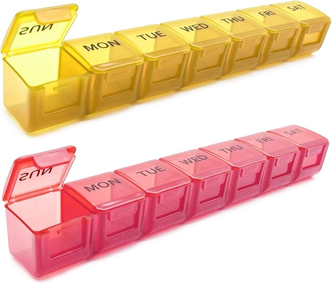 2 Pack Weekly Pill Organizer, Large 7 Day Pill Case, Daily Vitamin Case Medicine Box, AM/PM Pill Containers for Medicine Supplements Fish Oil (Orange & Red)