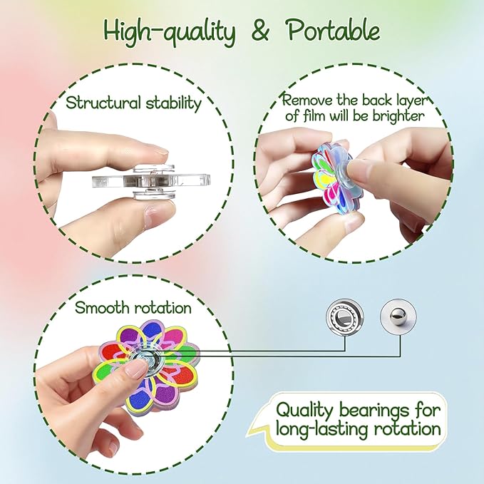 - 【Unique Creative Design】 The unique and innovative style is eye-catching, with rich colors and novel and diverse patterns. When these petal-shaped sensory gyroscopes rotate, they will display exquisite patterns, providing a charming sensory experience.
