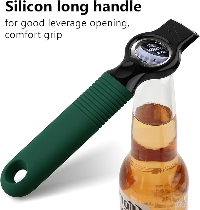 - ERGONOMICALLY DESIGNED HANDLE: 6.9inches long handle has good leverage to easily open bottles and tabbed can fast. Silicone material makes it fit the palm comfortably and providing an outstanding non-slip grip even with wet hand.