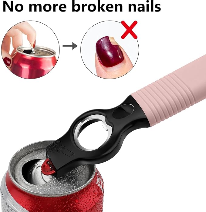 - ERGONOMICALLY DESIGNED HANDLE: 6.9inches long handle has good leverage to easily open bottles and tabbed can fast. Silicone material makes it fit the palm comfortably and providing an outstanding non-slip grip even with wet hand.